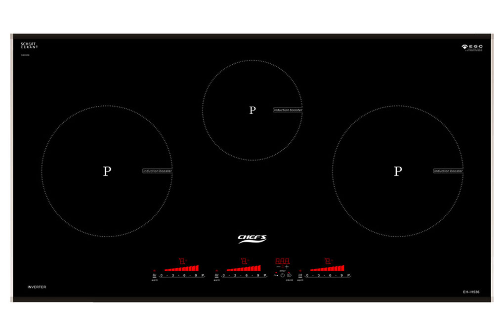 Bếp từ Chef’s EH-IH536 với 3 vùng nấu sử dụng linh kiện nhập khẩu trực tiếp từ hãng E.G.O – Made in Germany. Bếp được lắp ráp tại Việt Nam. Tổng công suất đạt 6800W, tiết kiệm thời gian nấu nướng. Phù hợp với tất cả mọi gia đình.