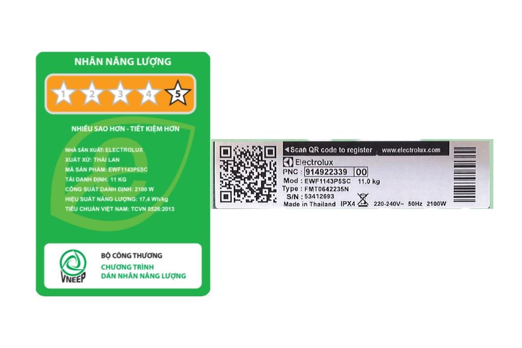 Thông số kỹ thuật Máy giặt Electrolux Inverter 11 kg EWF1143P5SC