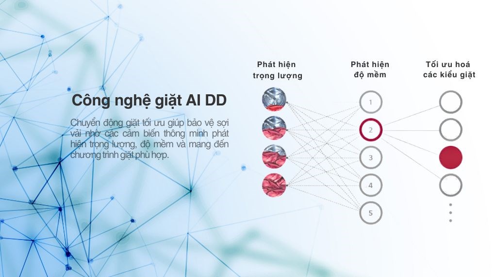 – Công nghệ AI DD bảo vệ sợi vảilàsử dụng trí tuệ nhân tạo AIđược trang bị trong máy giặt để đo lường trọng lượng, cảm biến độ cứng, mềm của vải để tối ưu hoá bằng các chương trình hoạt động chuyên biệt.