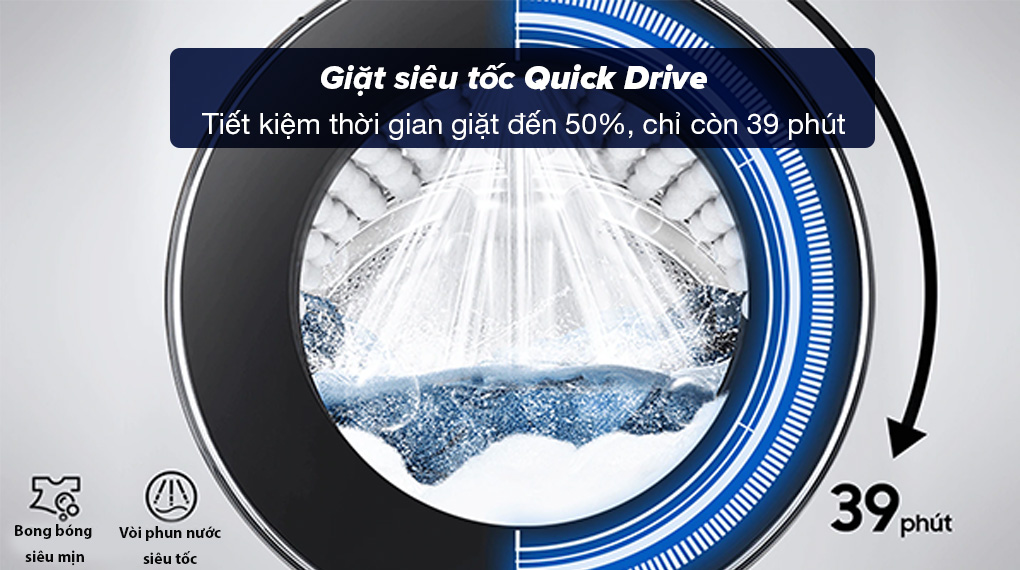 – QuickDrive giặt xả hiệu quả chỉ trong 39 phút