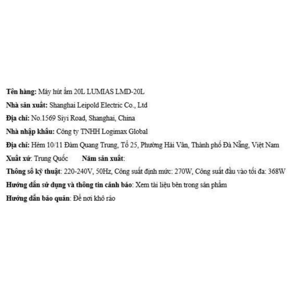Máy hút ẩm LUMIAS LMD-20L là lựa chọn tuyệt vời cho những gia đình muốn kiểm soát độ ẩm hiệu quả trong không gian từ 20 – 40m². Với công suất hút ẩm mạnh mẽ 20 lít/ngày, công nghệ ion bạc làm sạch không khí và hàng loạt tiện ích thông minh như điều khiển qua ứng dụng, sản phẩm không chỉ mang lại không gian khô thoáng mà còn góp phần cải thiện chất lượng không khí, bảo vệ sức khỏe cho cả gia đình bạn. Đây thực sự là một khoản đầu tư xứng đáng cho những ai đang tìm kiếm một chiếc máy hút ẩm 20 – 40m² đa năng và hiện đại.