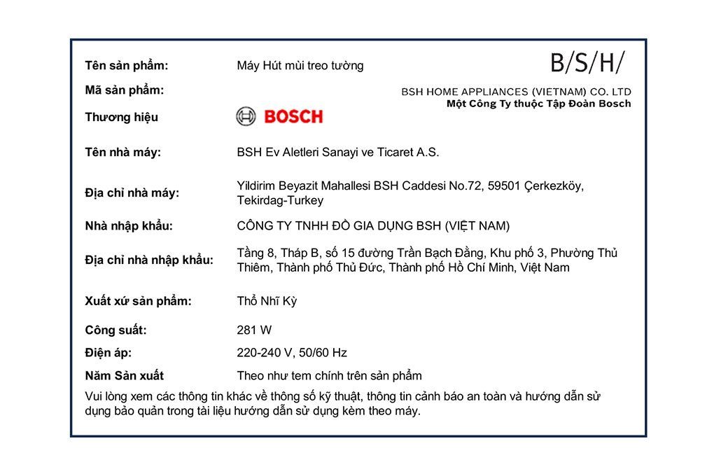 Sản phẩm thuộc thương hiệu nổi tiếng toàn cầu Bosch của Đức, được chế tạo và nhập khẩu nguyên chiếc từ Thổ Nhĩ Kỳ, đảm bảo độ hoàn thiện tinh xảo, chất lượng ổn định và độ bền vượt trội trong quá trình sử dụng.