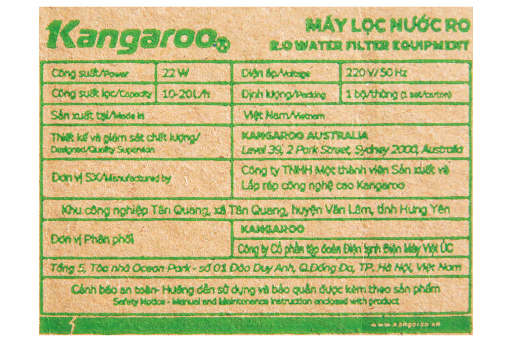 Lưu ý:Các thay đổi này chỉ thay đổi về mặt thiết kế, còn về nguyên lý hoạt động, dung tích bình chứa, chất lượng sản phẩm, vẫn không thay đổi. Khi khách hàng mua sản phẩm máy lọc nước RO không vỏ Kangaroo KG110 9 lõi tại Điện máy XANH sẽ được giao mẫu ngẫu nhiên.