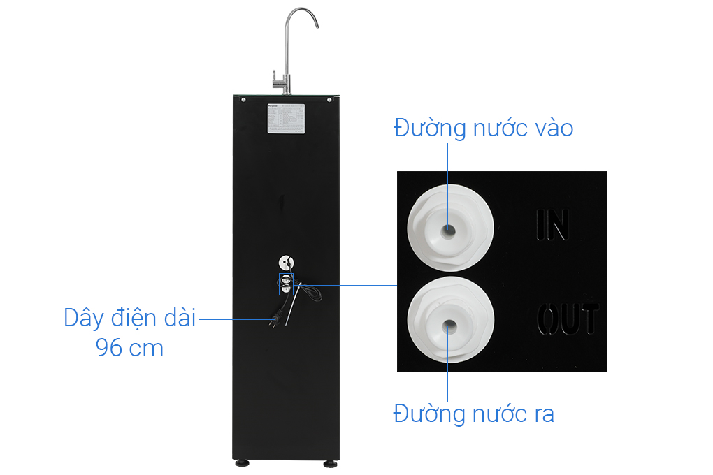 – Máy lọc nước này có tỷ lệ lọc – thải là 3.8/6.2. Đồng nghĩa, nếu có 10 lít nước đưa vào máy sẽ lọc được 3.8 lít nước tinh khiết để uống và 6.2 lít được thải ra ngoài.
