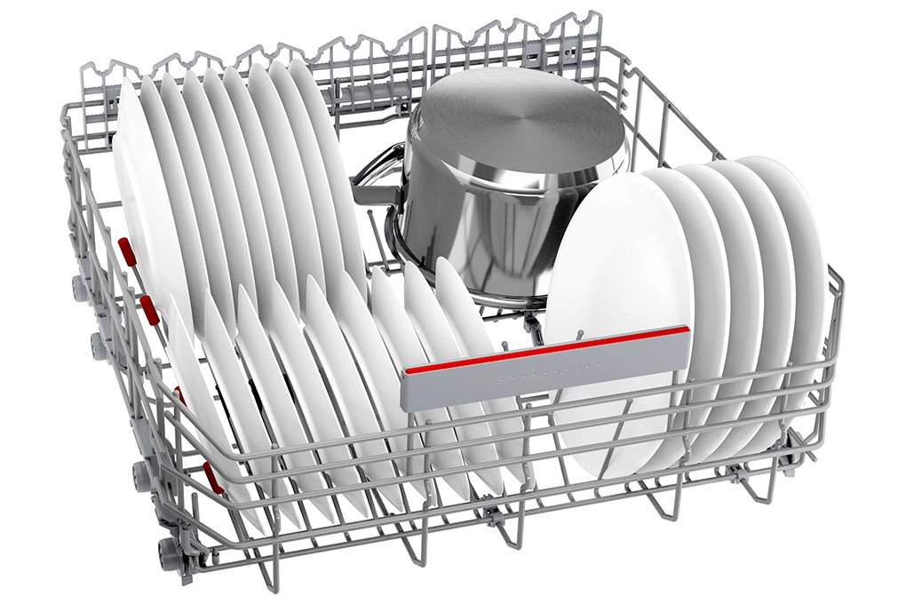 Với khả năng rửa 14 bộ đồ ăn Châu Âu, tương đương 3 – 4 bữa ăn của gia đình Việt, máy giúp tiết kiệm thời gian và công sức. 3 giàn rửa linh hoạt tối ưu không gian xếp bát đĩa, đồng thời mở rộng dung tích chứa cho ngăn rửa dưới cùng, thuận tiện cho việc sắp xếp nồi, chảo hay bát đĩa lớn.