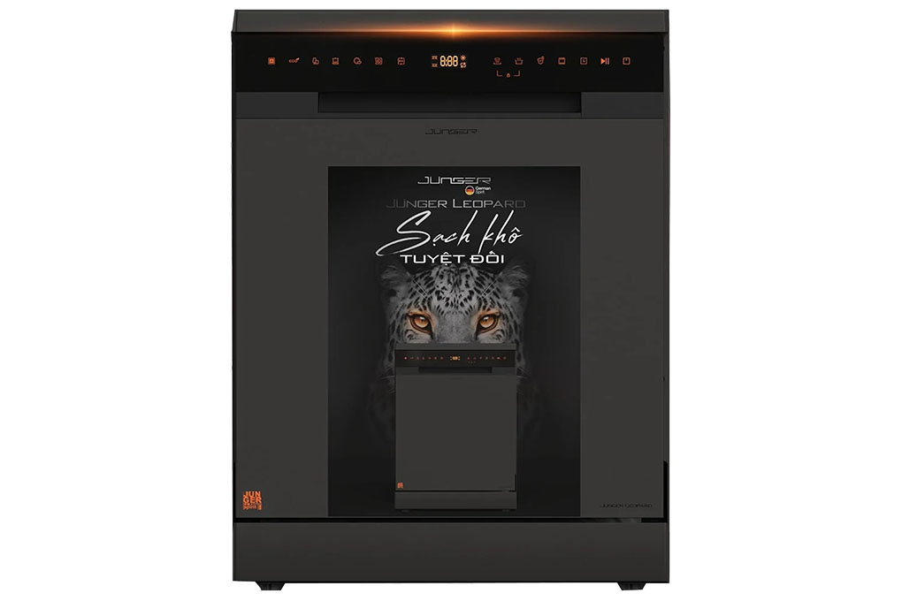 - Junger Leopard DWJ-183-VG nổi bật với khả năng làm sạch và khử khuẩn toàn diện nhờ sự kết hợp của nước nóng 75℃, công nghệ tiệt trùng UV Virus Killer Tech, hệ thống sấy khô Junger Super Dry và khử mùi bằng gió tươi đối lưu Fresh Air. Nhờ đó, máy có thể tiêu diệt tới 99.99% vi khuẩn, ngăn ngừa nấm mốc, loại bỏ hoàn toàn mùi hôi, giữ cho bát đĩa luôn sạch khuẩn và an toàn cho sức khỏe.
