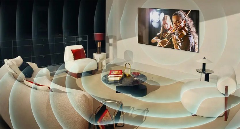 – AI Sound Pro nâng cấp số lượng kênh âm thanh trên tivi thành hệ thống 9.1.2 kênh lan tỏa rộng hơn trong gian phòng.