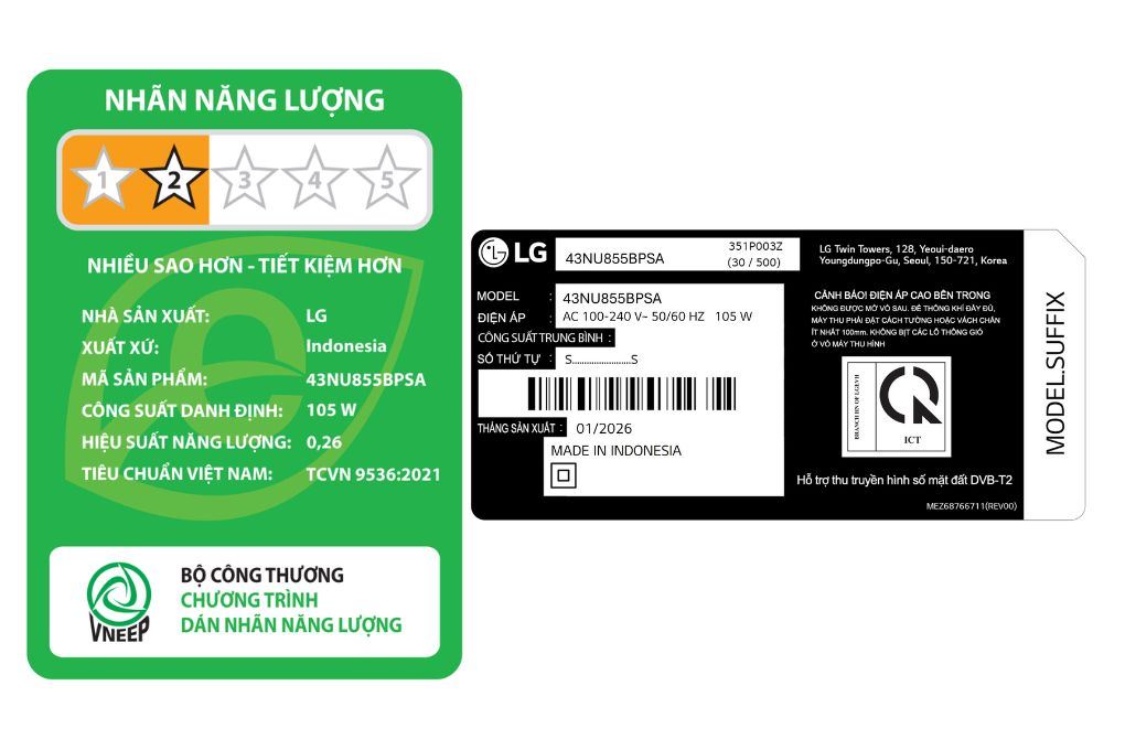 Thông số kỹ thuật Smart Tivi LG AI 4K 43 inch 43NU855BPSA