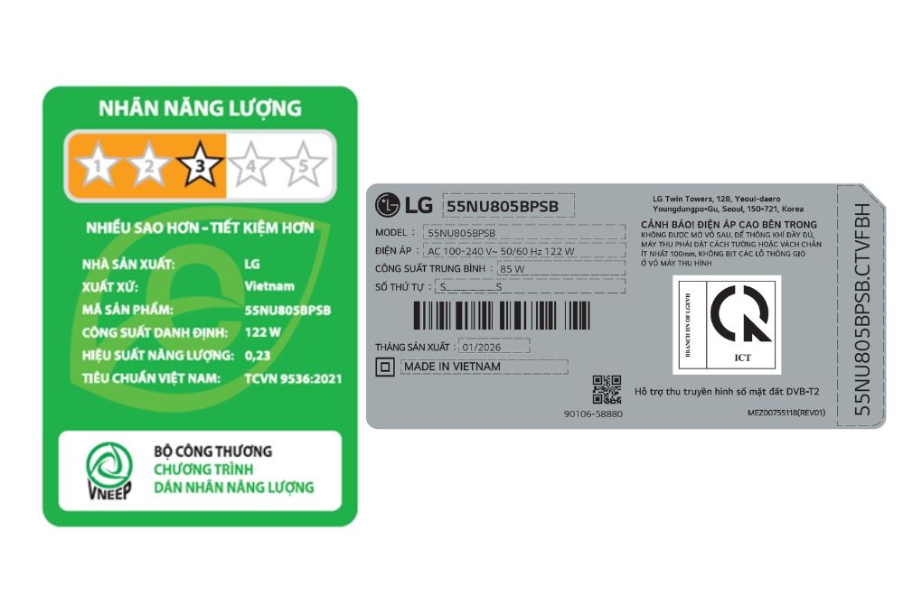 Thông số kỹ thuật Smart Tivi LG AI 4K 55 inch 55NU805BPSB