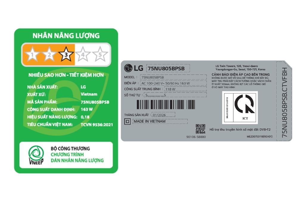Thông số kỹ thuật Smart Tivi LG AI 4K 75 inch 75NU805BPSB
