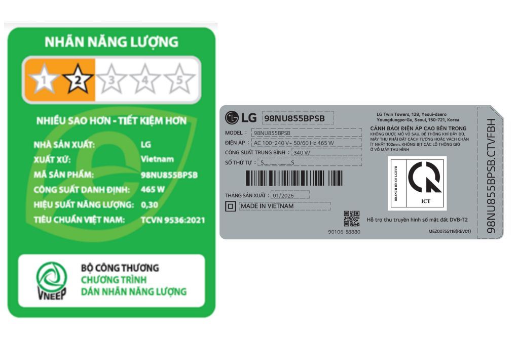 Thông số kỹ thuật Smart Tivi LG AI 4K 98 inch 98NU855BPSB