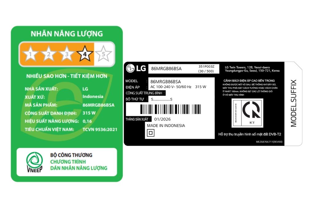 Thông số kỹ thuật Smart Tivi Micro RGB LG AI 4K 86 inch 86MRGB86BSA