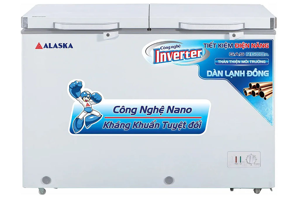 Tủ đông được trang bị công nghệ Inverter tiết kiệm điện. Công nghệ này giúp tủ hoạt động hiệu quả hơn với tiêu thụ điện năng thấp hơn so với các tủ thông thường. Tủ đông Alaska Inverter còn giúp máy hoạt động êm ái và bền bỉ hơn, không ảnh hưởng đến quá trình sinh hoạt của gia đình hay các hoạt động kinh doanh.