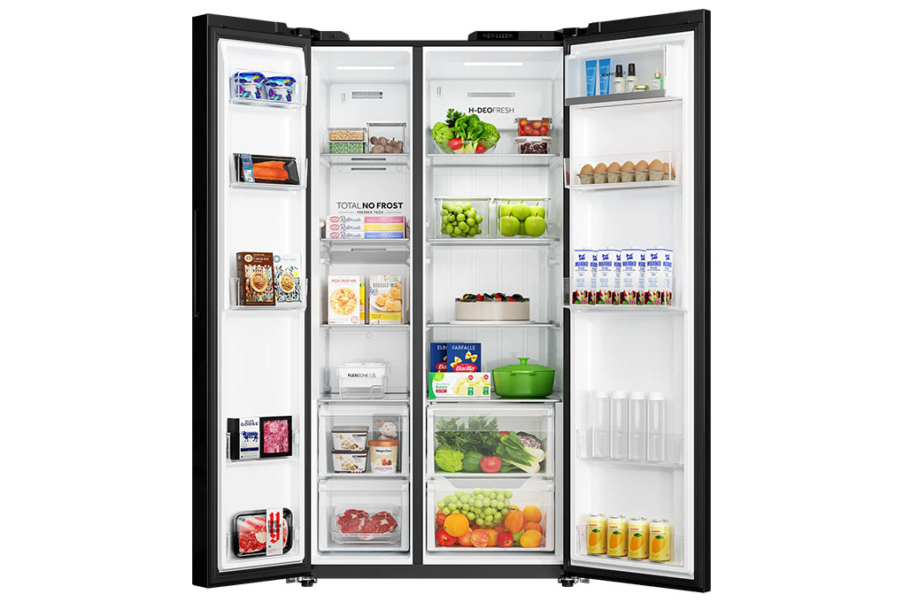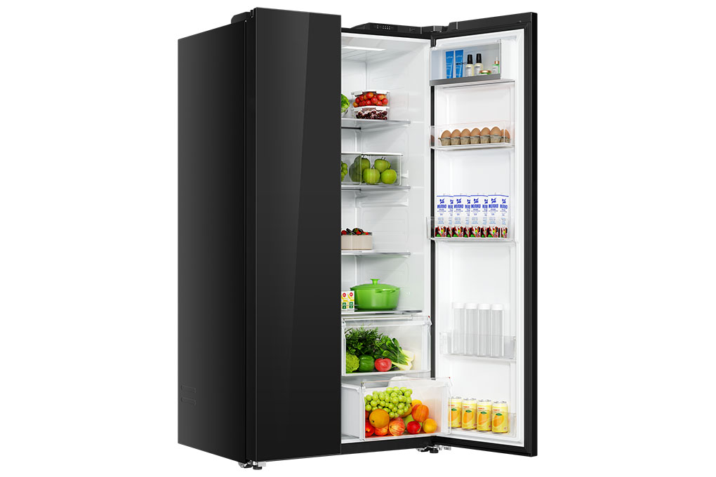 – Tủ lạnh có dung tích sử dụng 646 lít, không gian lưu trữ rộng rãi, đáp ứng thoải mái nhu cầu bảo quản thực phẩm cho gia đình 5 – 7 người, kể cả khi dự trữ nhiều thực phẩm trong tuần.
